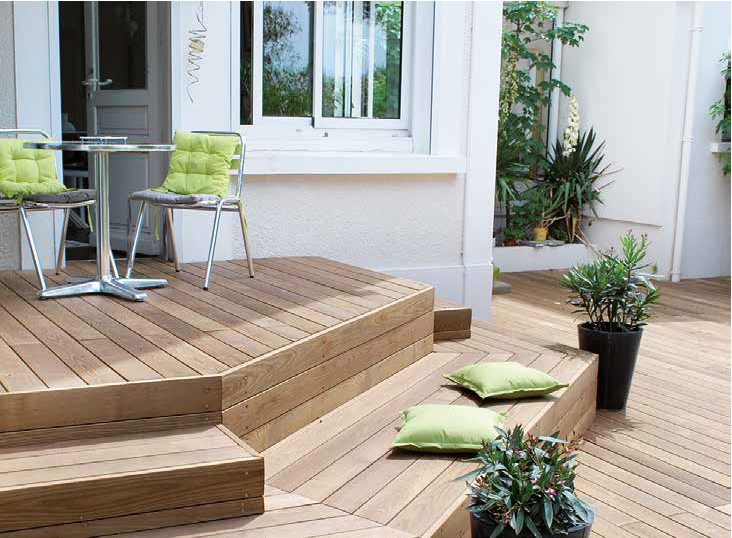 Europejski jesion poddany procesowi termowania zyskuje koniakową barwę, większą odporność na pogodę i stabilność wymiarową. To luksusowy wybór dla tarasów premium.